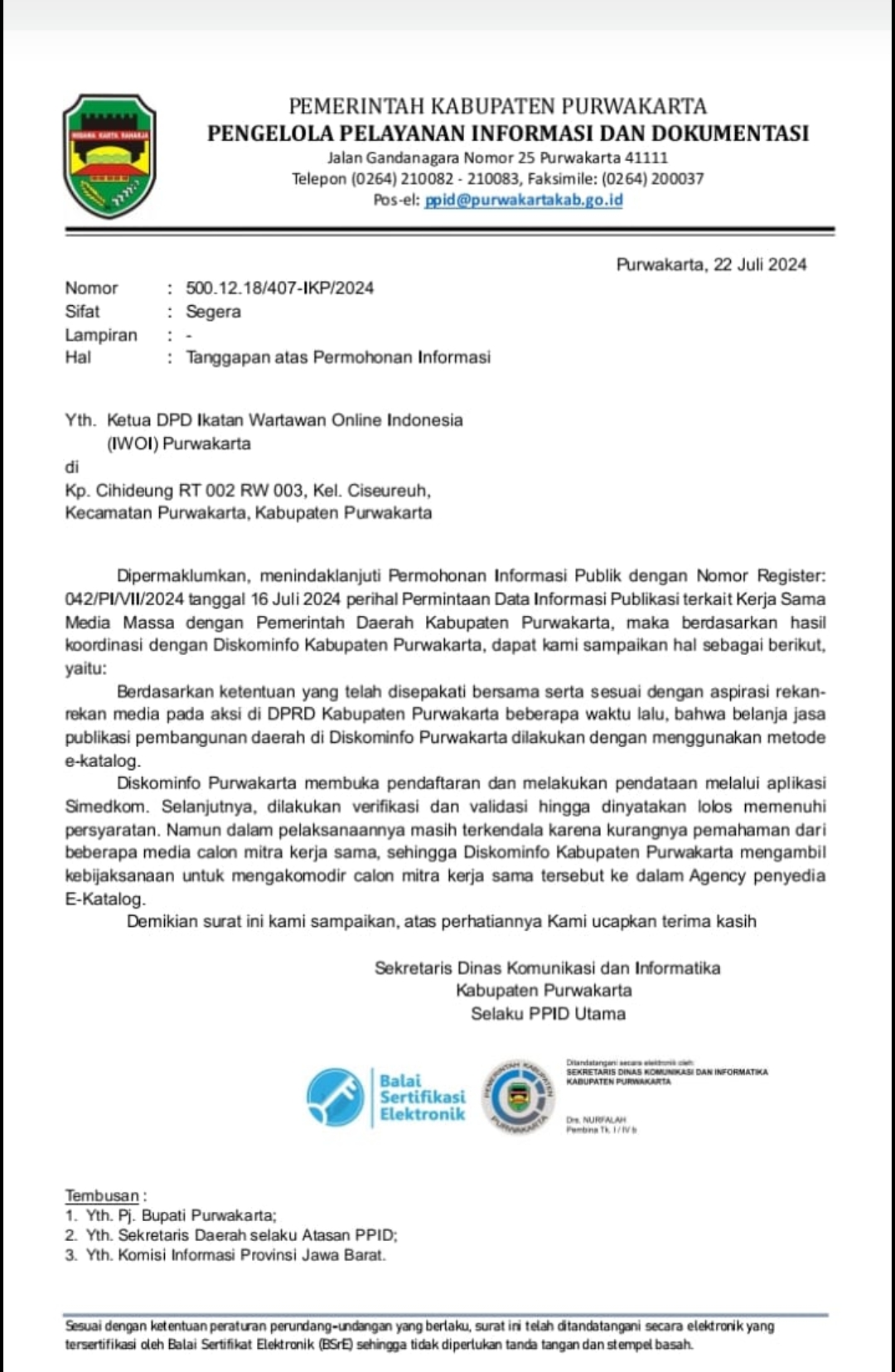 PURWAKARTA, (RN).- Bidang Informasi Komunikasi dan Publikasi (IKP) Dinas Komunikasi dan Informatika (Diskominfo) Purwakarta terkesan menutupi biodata agency yang ikut tergabung dalam sistem E-catalog muncul keluar. Hal tersebut menjadi dugaan insan media, apakah pemilik agency adalah “orang-orang” Diskominfo. Sehingga bisa terjadi”permainan nakal” untuk meraup keuntungan dari anggaran kerja sama publikasi tahun 2024 di tubuh Diskominfo. […]